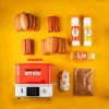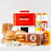 Pack comprenant 1 Squeeze de 800mL Ketchup, 1 Squeeze de 800mL de Moutarde Us, 1 Sachet de 500gr d’Onions Crispies et 1 Squeeze de 900mL de Sauce Chedda Cheese.